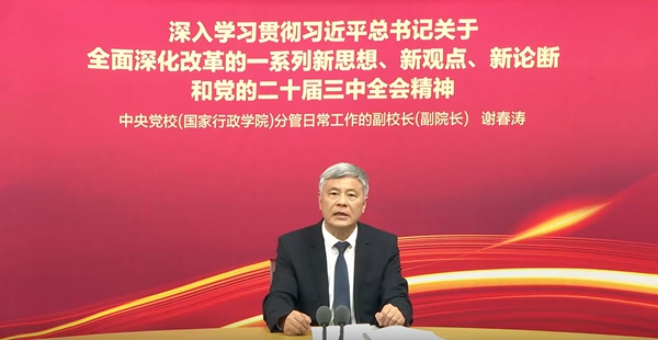 参会党员们观看学习了《深入学习贯彻习近平总书记关于全面深化改革的一系列新思想、新观点、新论断和党的二十届三中全会精神》视频课程。该课程由中央党校(国家行政学院)分管日常工作的副校长(副院长)谢春涛教授讲解。以二十届二中全会以来,在国内外严峻形势下,我们取得的重大成效,解读党的二十届三中全会站在新的历史起点上,进一步全面深化改革的总目标是“继续完善和发展中国特色社会主义制度,推进国家治理体系和治理能力现代化”,提出了“七个聚焦”、“五个注重”,贯彻“六个原则”,锚定继续完善中国特色社会主义制度,以制度为保障,实现民族复兴伟业。谢教授通过对全面深化改革的重大意义、总体要求、主要任务和保障措施等的详细阐述,为大家提供了丰富的理论滋养和实践指导。