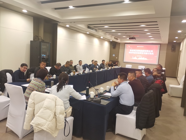 仪式现场,气氛庄重而热烈。总经理景亚杰与各事业部经理共同签署了承载着公司战略目标的2025年度经营管理目标责任书,吹响了公司2025年高质量发展的冲锋号。