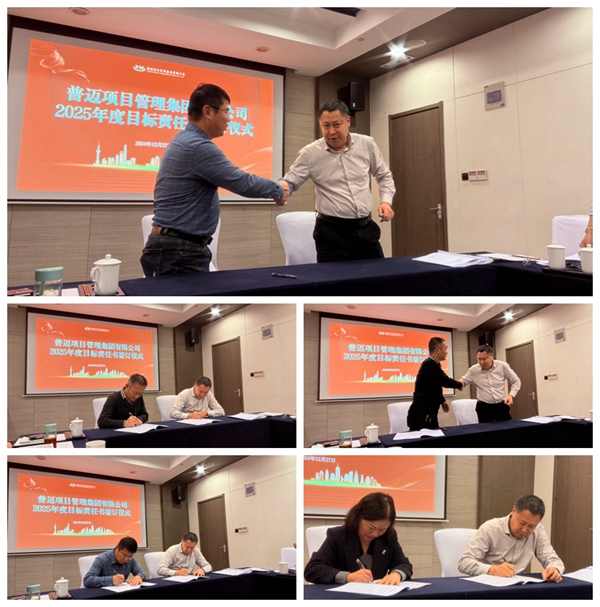 公司董事长李三虎做了振奋人心的动员讲话,他表示,2024年面对市场诸多变化的严峻形势,经过公司上下团结一心,全员共同努力,积极应对,取得了难能可贵的公司经营发展成绩,相较于之前年度公司转型创新有亮点:代建业务、全过程咨询业务、代理造价咨询业务有新收获!以公司2025年度经营管理目标责任书签订为标志,普迈公司在新年度的创新、发展谋划,应对策略已经明确,我们要做的就是坚定信心,勇敢面对2025年的机遇与挑战,干字当头,凝聚企业高质量发展合力,奋发有为,相信所有的努力皆有回报。通过这次目标责任书签订仪式,给普迈全员鼓舞士气,振奋精气神,让我们共同努力,开启2025年普迈高质量发展的新篇章!