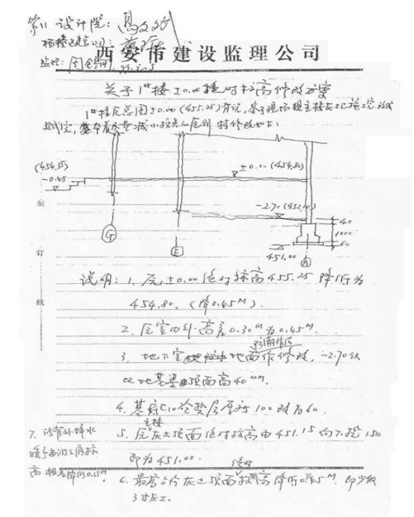杨凌示范区二期安居工程1号楼±0.00绝对标高修改方案
