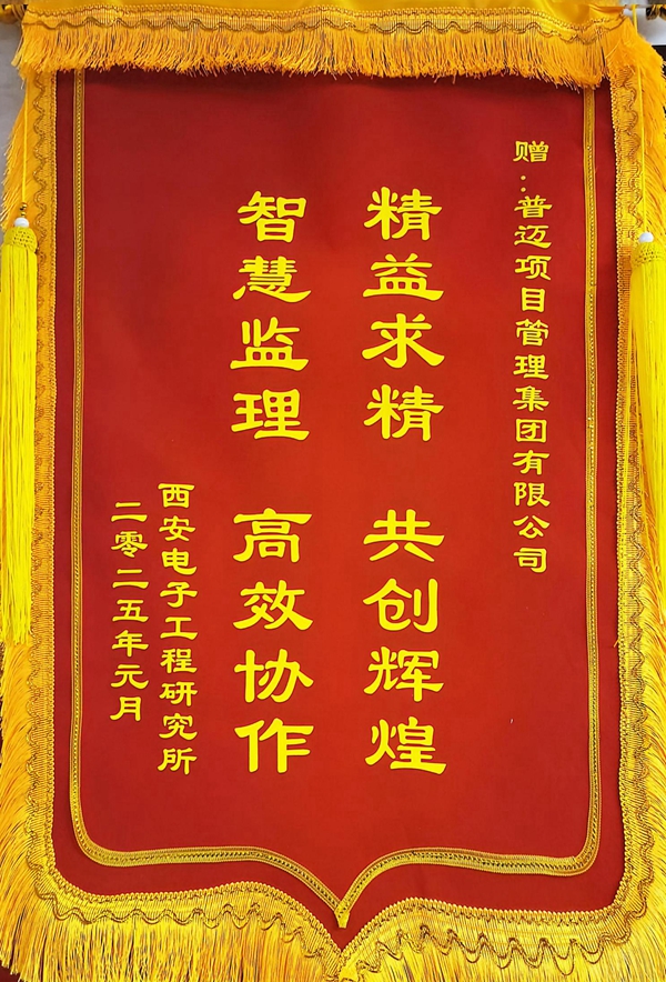 新春将至,公司提供服务的多个项目凭借高质量履约收获建设单位的高度认可和赞扬,一封封表扬信、感谢信纷至沓来!近日,公司再次收到了建设单位西安电子工程研究所送来的“精益求精 共创辉煌 智慧监理 高效协作”锦旗和表扬信,对公司派驻现场的由总监赵蕾及总监代表王迟带领的监理团队表示了感谢和赞扬!