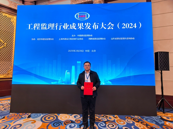2025年2月20日,由中国建设监理协会主办,北京市建设监理协会、上海市建设工程咨询行业协会、河南省建设监理协会、山东省建设监理与咨询协会协办的 “工程监理行业成果发布大会(2024)”在北京隆重召开。来自住房城乡建设部领导、中国工程院院士、高校教授学者、中国工程监理大师等行业专家,中国建设监理协会理事,各省、自治区、直辖市工程监理行业协会主要负责人,有关行业专委会、分支机构的主要负责人,首届全国工程监理知识竞赛获奖代表,以及有关新闻媒体近600人参加会议,同时,会议通过视频直播在线观看11万余人次。公司董事长李三虎、副总工程李安忠参加了本次大会。