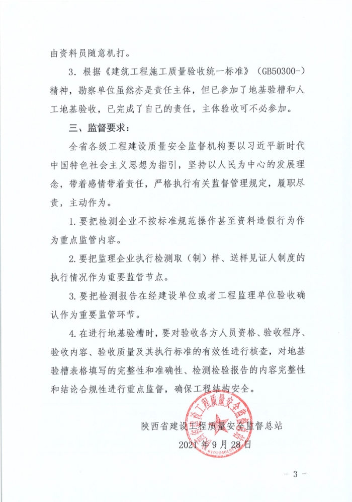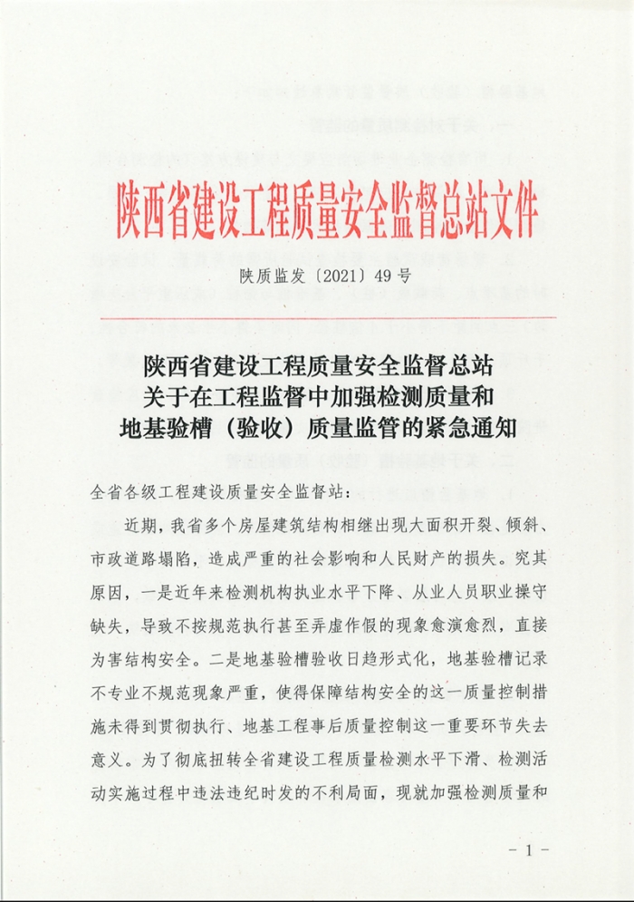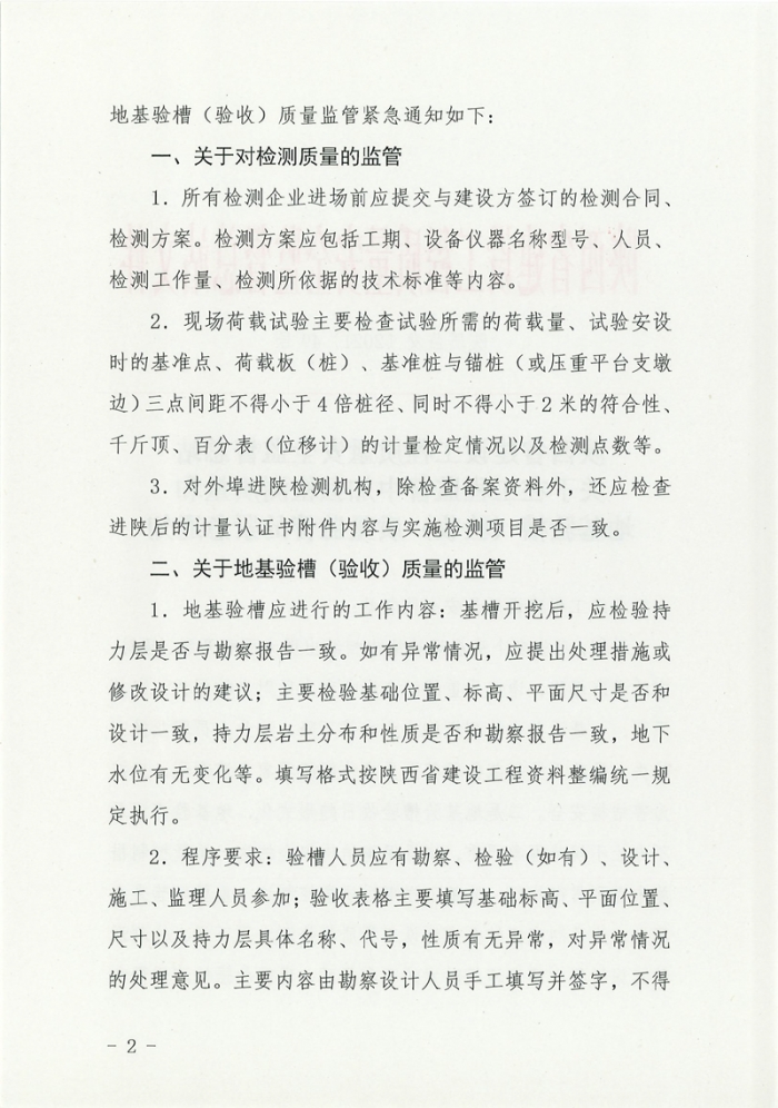 陕西省质量安全监督总站关于在工程监督中加强检测质量和地基验槽(验收)质量监管的紧急通知